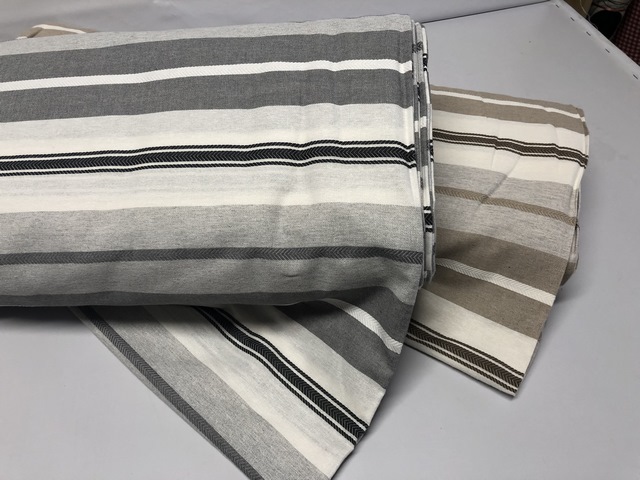 Da Cucito a Pennello potete trovare questo tessuto a righe tonaltà grigio o marrone per un’altezza di 280 cm.  cotone 80% poliestere 20%